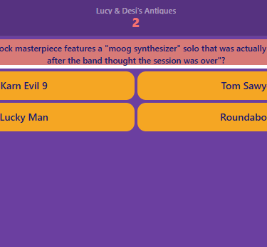 Dual-category depth and randomisation — Music AND TV trivia from the 60s through the 90s.