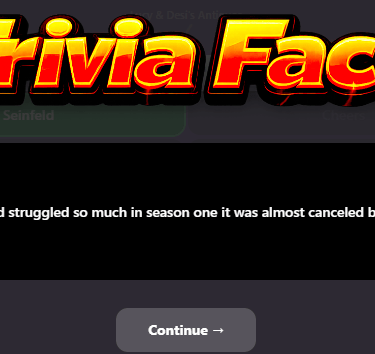 Trivia facts — after every question, you’ll learn a fact about the topic